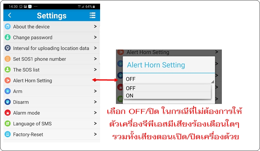 5.5 การตั้งค่า เสียงร้องเตือนจากตัวเครื่อง GPS ในกรณี ที่มีการตั้งต่าเตือนเอาไว้ ถ้าหากเปิด เครื่องจะร้องเตือนผ่านลำโพง แต่ถ้าปิดเครื่องจะไม่ส่งเสียง จะเตือนผ่านช่องทางอื่นๆ ****รวมถึงเวลาเปิด ปิด เครื่องจะไม่มีเสียงด้วยเช่นกัน