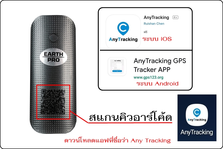 - ดาวน์โหลดแอฟที่ชื่อว่า Any Tracking จะสแกนคิวอาร์โค้ดที่ติดอยู่ด้านหน้าเครื่องก็ได้ หรือจะโหลดเองก็ได้ตามนี้