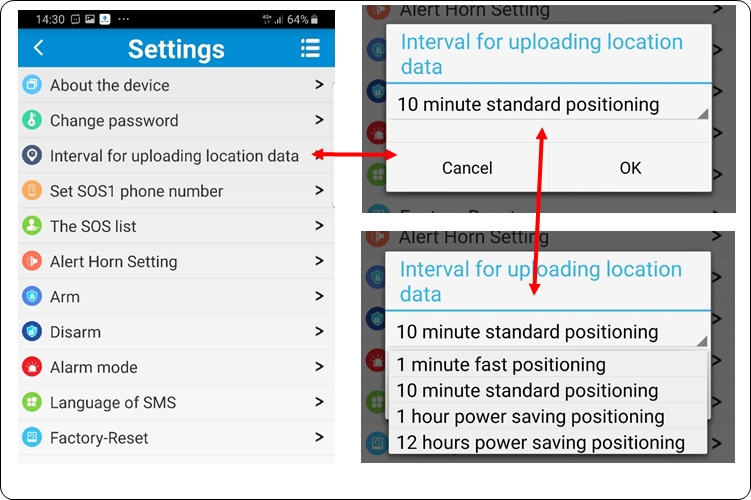 5.3 เลือกความถี่ในการอัพโหลด ตำแหน่ง ค่ามาตรฐานโรงงานคือ 10 นาที แต่เราสามารถเลือกได้อีก คือ ทุก 1 นาที 1 ชม หรือ 12 ชม