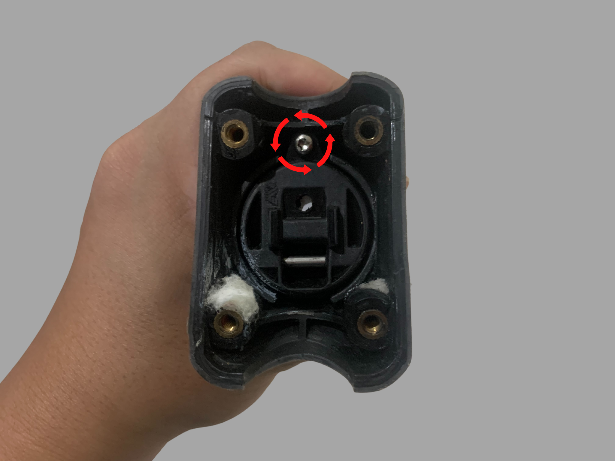 1. ใช้ประแจหกเหลี่ยม เบอร์ 3 ไขฝาปิดตูด โดยค่อยๆไขออกครั้งละเล็กน้อยทีละมุมวนไปเรื่อยๆ จนหลุดออกมา