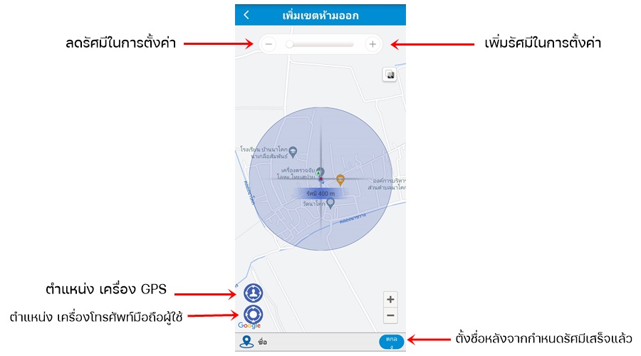 กำหนดรัศมีแจ้งเตือนเมื่อเป้าหมายออกจากพื้นที่ที่กำหนดไว้