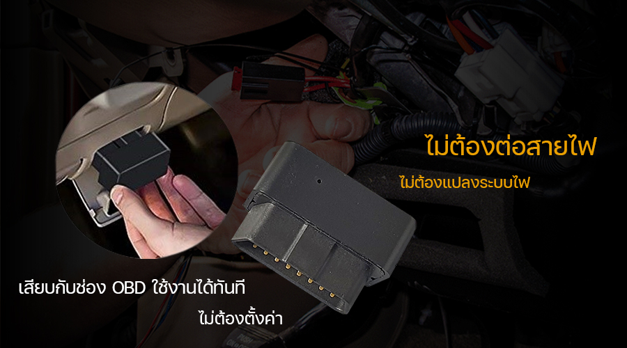 ไม่ต้องต่อสายไฟ หรือ แปลงระบบ สะดวก ใช้งานง่าย เพียงแค่เสียบกับช่อง OBD ไม่ต้องเดินสายไฟให้ยุ่งยาก ไม่ต้องรื้อหรือถอดชิ้นส่วนรถยนต์ และไม่ต้องแปลงระบบไฟหรือลงโปรแกรมใดๆกับระบบรถยนต์ อีกทั้งไม่ต้องตั้งค่า เพียงแค่ใส่ซิมการ์ดที่เปิดใช้งาน ลงทะเบียนให้เรียบร้อย เสียบกับช่อง OBD ก็สามารถติดตามรถยนต์ ป้องกันขโมยและใช้งานผ่านแอพ GPS ได้ทันที
